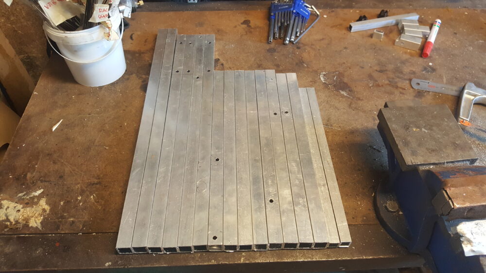 - Borra inte exakt 6 millimeter stora hål till M6-skruv. Det är svårt att hålla sådan precision att hålen passar när man skruvar ihop. Jag kör 6,5 mm, men det går gissningsvis att gå upp till 7 mm för enklare montering.